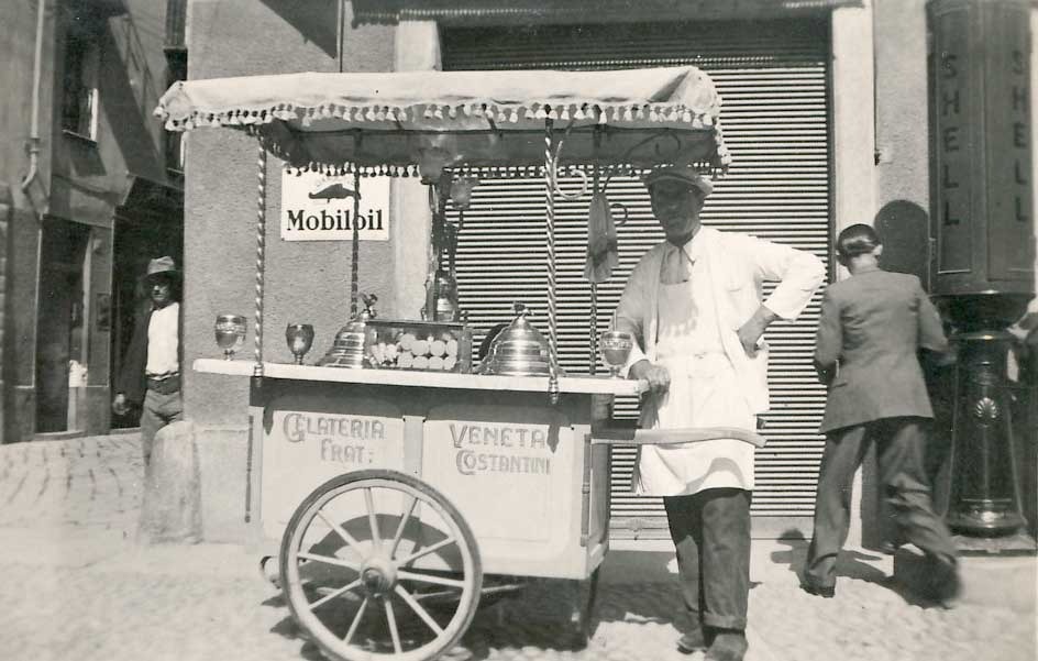 Sie alle wussten, wie so viele Bewohner dieses Tals und der angrenzenden Täler, schon damals um das Geheimnis, ein wohlschmeckendes Speiseeis herzustellen. Die De Pellegrins zog es ins nahe Österreich-Ungarn, wo Pietro De Pellegrin einen Salon für „Gefrorenes“ eröffnete, wie Speiseeis damals in der KuK-Monarchie genannt wurde. Die Familien Costantin, Mosena und Arnoldo hingegen schlugen die andere Richtung ein: Sie verkauften ihr Eis an mobilen Ständen, also mit Eiskarren, rund um den Gardasee, im Aostatal sowie im damaligen industriellen Zentrum Italiens, in Mailand und Umgebung. Doch in den 30er Jahren hielt es Aurelio Costantin nicht mehr in Italien. Er zog weiter- ins bürgerkriegsgeplagte Spanien, wo ihm nur wenig Glück beschieden war.