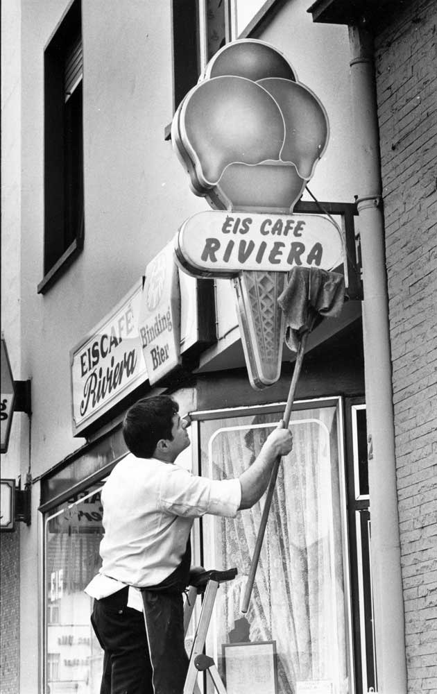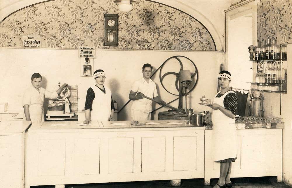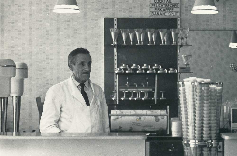 Nach dem Zweiten Weltkrieg verschlug es einen Grossteil der Familie wieder ins Zoldo- Tal. Von dort aus machten Sie sich abermals auf – nicht mehr nach Wien, wo die Zahl der Eisdielen pro Stadtbezirk beschränkt wurde, und auch nicht nach Leipzig, das nun zum Einflussbereich Stalins gehörte. Auch die Familie Mosena war inzwischen in Westdeutschland und eröffnete bei Fürth einen Eissalon.